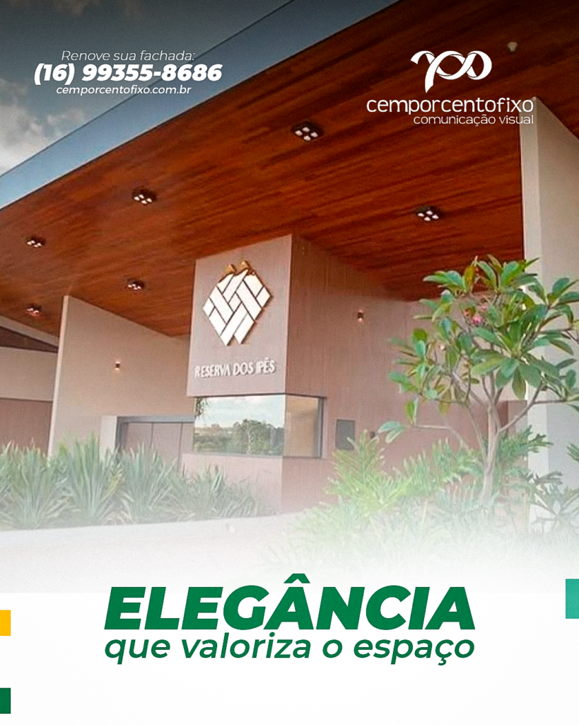 Quando o projeto exige sofisticação, cada detalhe faz a diferença. Para o Reserva dos Pés, desenvolvemos uma fachada imponente em ACM amadeirado com aplicação de letras caixa em inox polido, que proporcionam brilho, durabilidade e refinamento ao conjunto. O resultado? Um visual moderno, elegante e que comunica exclusividade desde a entrada.