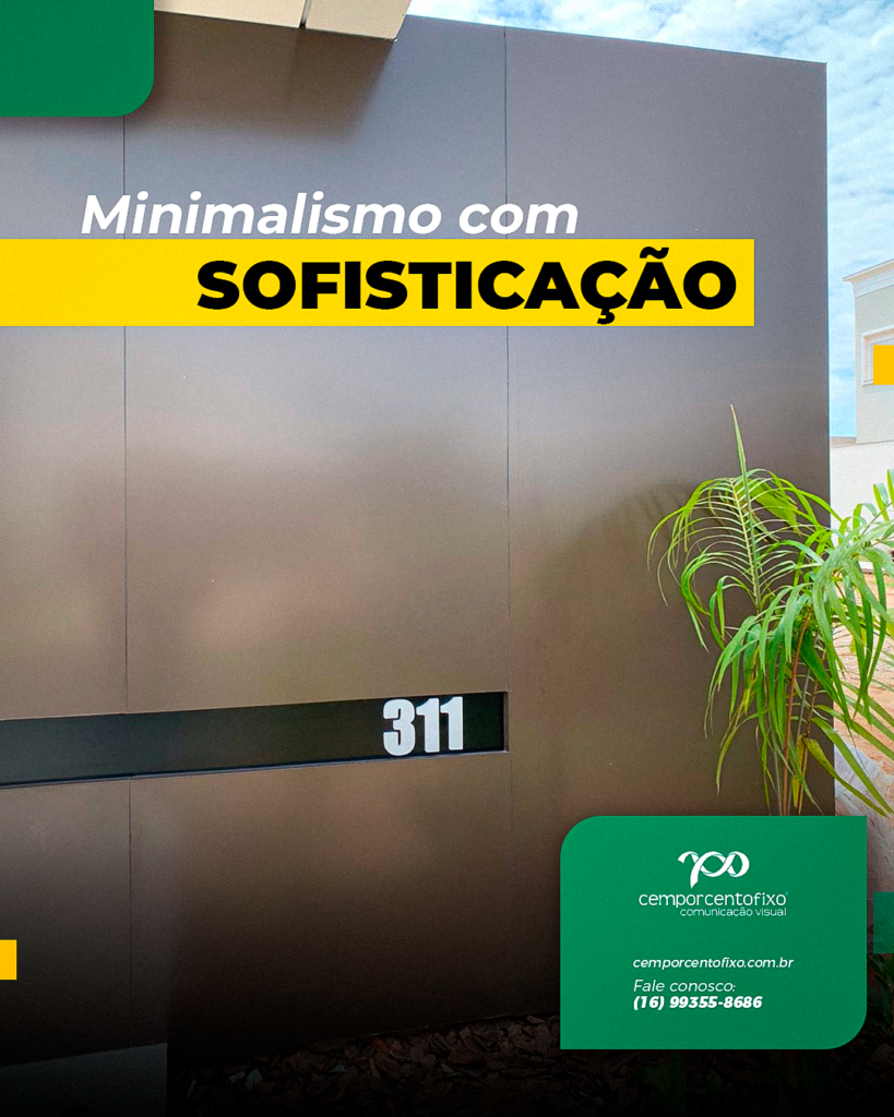 Um acabamento elegante faz toda a diferença na estética da fachada. Neste projeto, aplicamos revestimento em ACM marrom que garante um visual moderno, resistente e de fácil manutenção. Para completar, o número da residência foi destacado com letras caixa em PVC expandido branco, criando contraste e visibilidade com muito bom gosto.